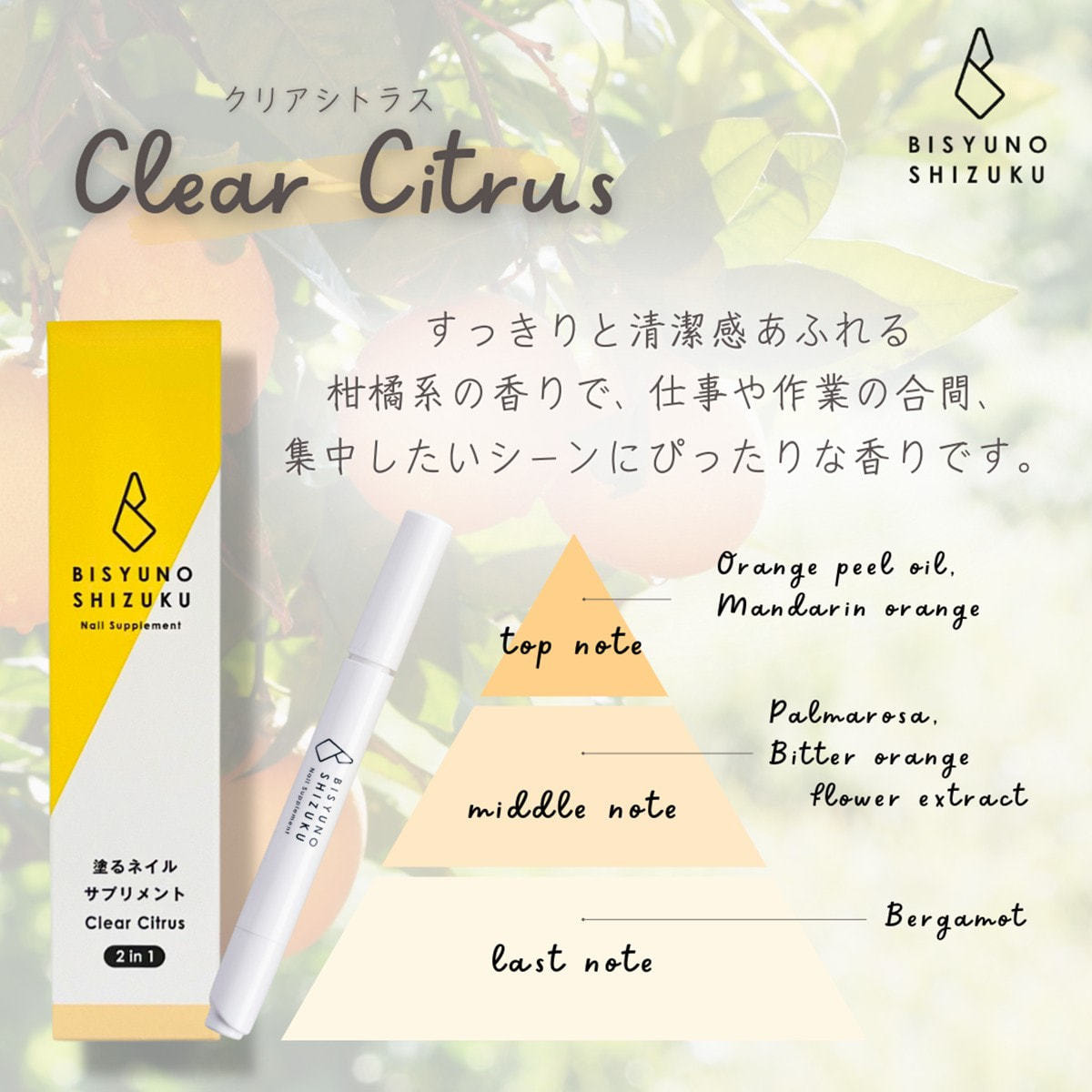 美手の雫 ネイルサプリメント 2in1 fg クリアシトラスの香り 2.8ml