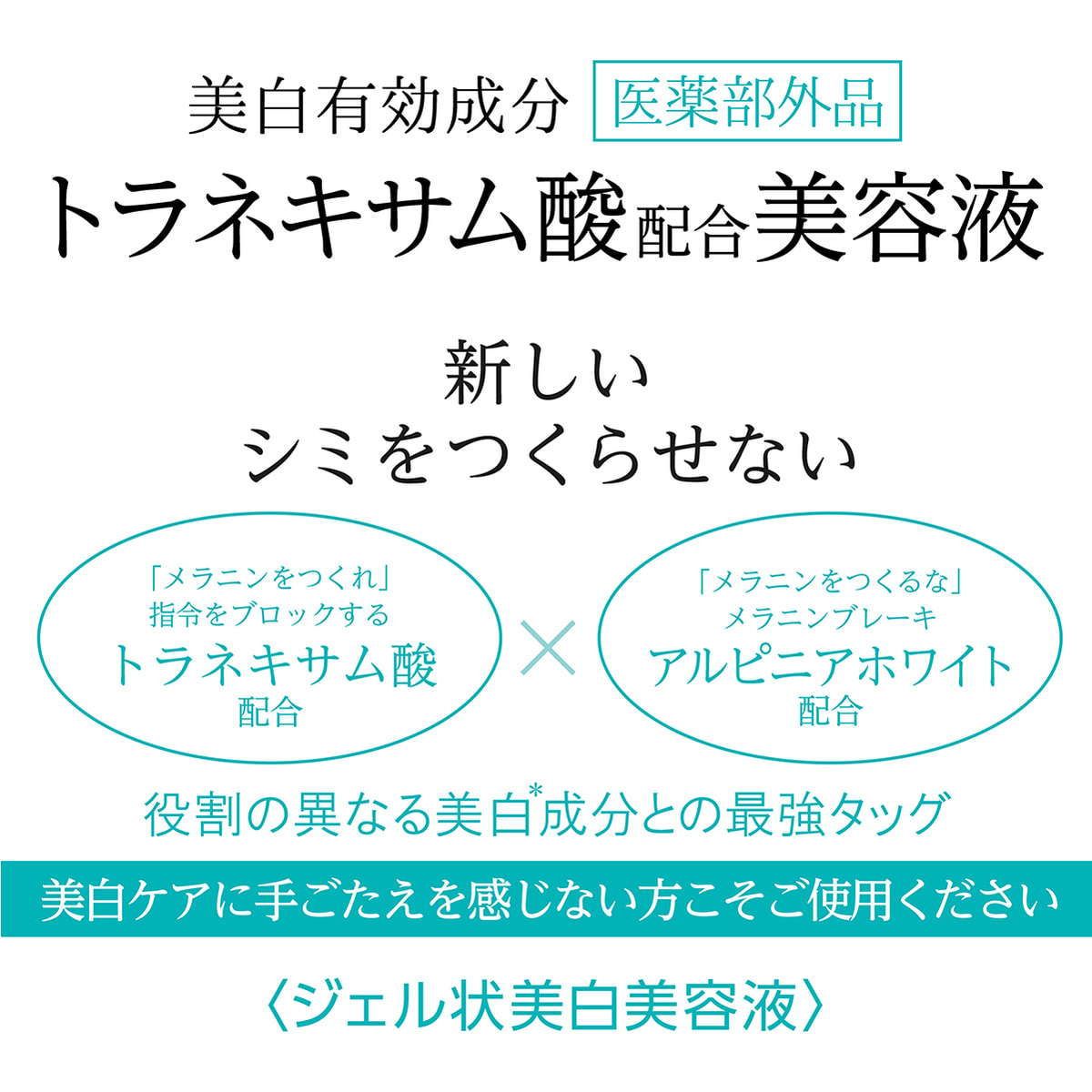 肌荒れ防止目的や、美白※有効成分として広く使われている医薬部外品成分『トラネキサム酸』配合のジェル状美容液です。