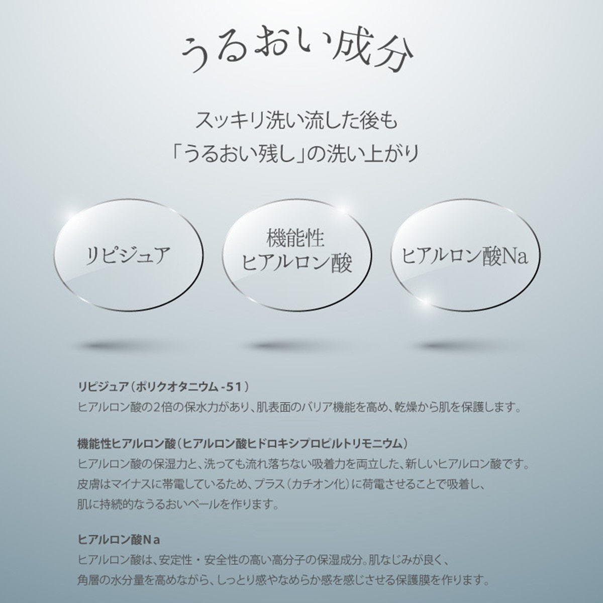 潤い成分として3種のセラミド、リピジュア、2種のヒアルロン酸も配合。