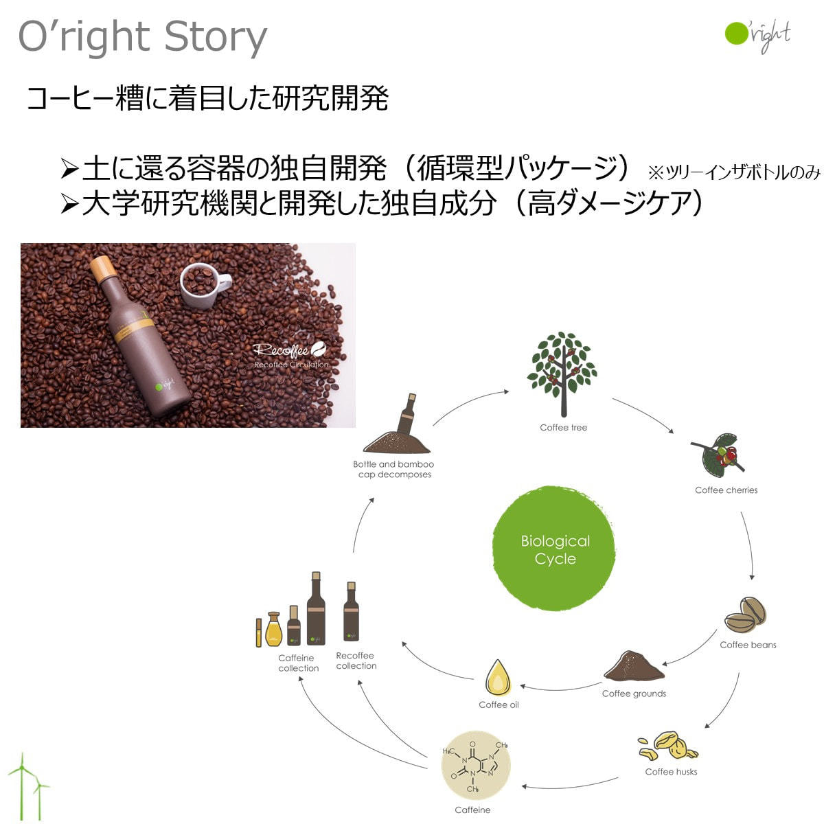 台湾原生のコーヒーを独自の超音波技術により抽出したカフェインエキスは、髪と頭皮に潤いを与え、フケを抑えます。