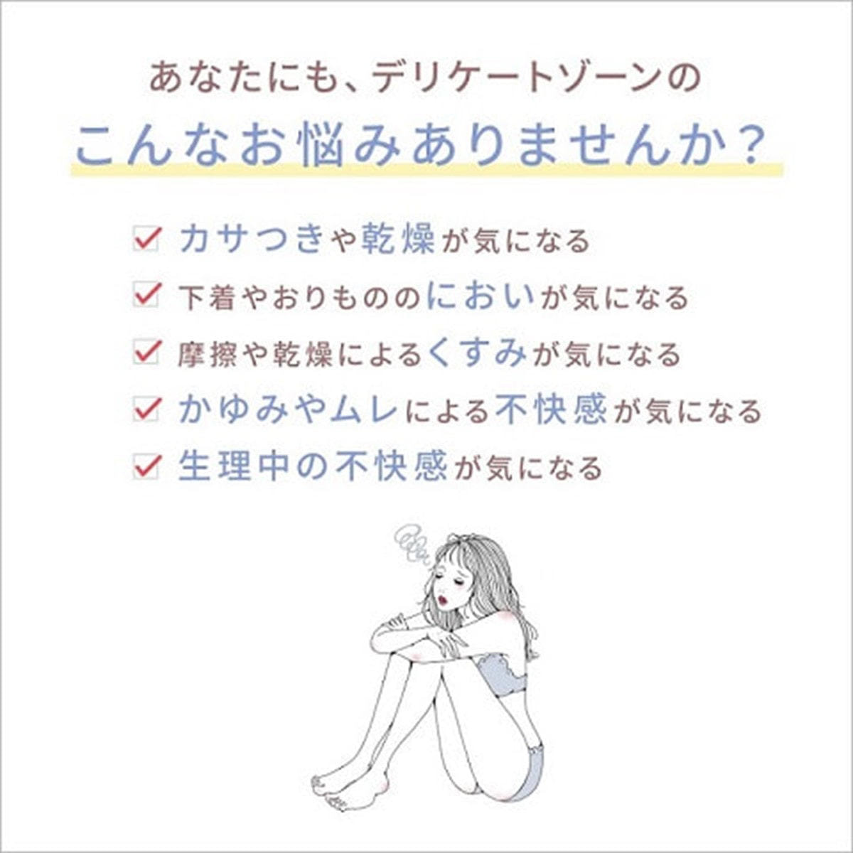 肌を清潔にした後、5~10cmほど離して、適量をデリケートゾーンに直接スプレーしてください。