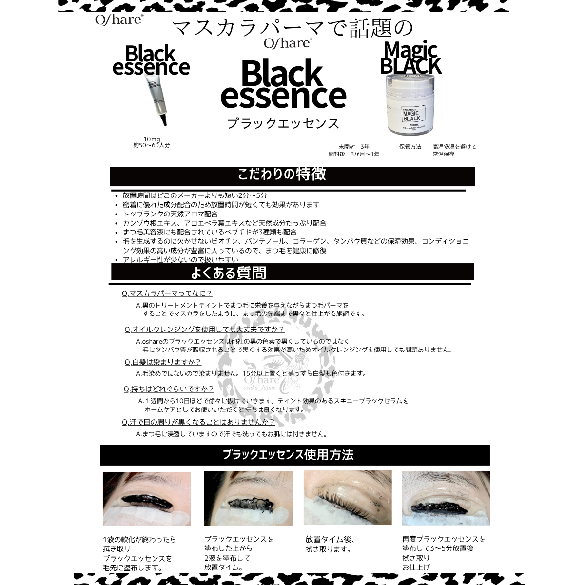 ブラックエッセンスとクレイジーワックスを2:1の割合で混ぜ、綿棒等でまつ毛に塗布してください。