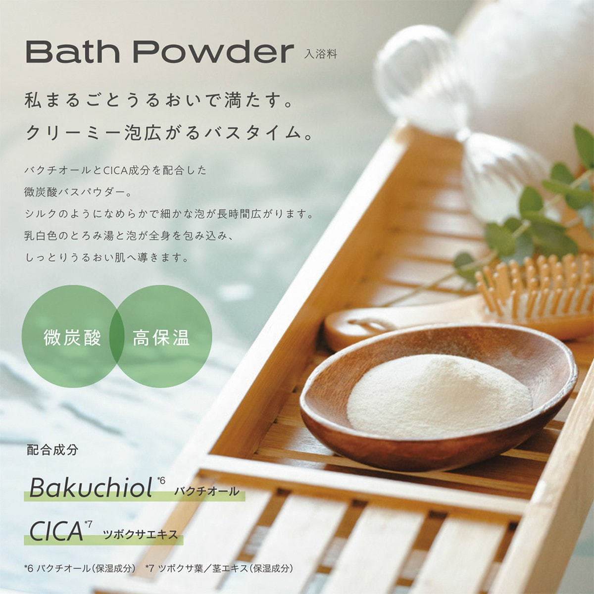 バクチオールとCICA成分を配合した微炭酸バスパウダーです。