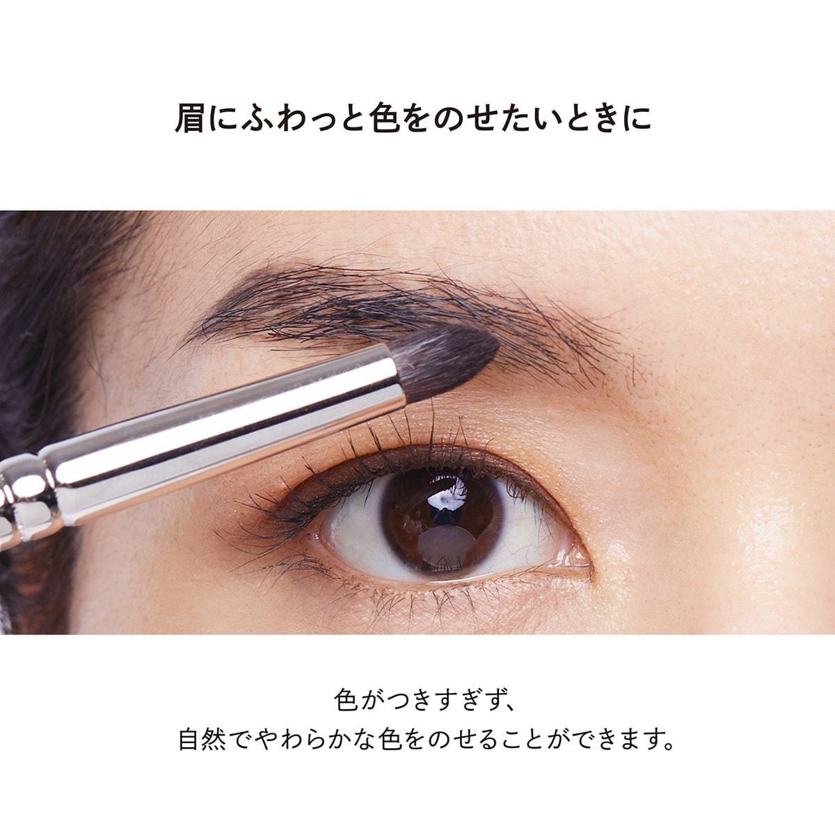 なめらかな肌ざわりの馬毛を使用し、パウダーをソフトに 発色させることとラインを自然にぼかすことができる丸形尖りタイプのブラシ。