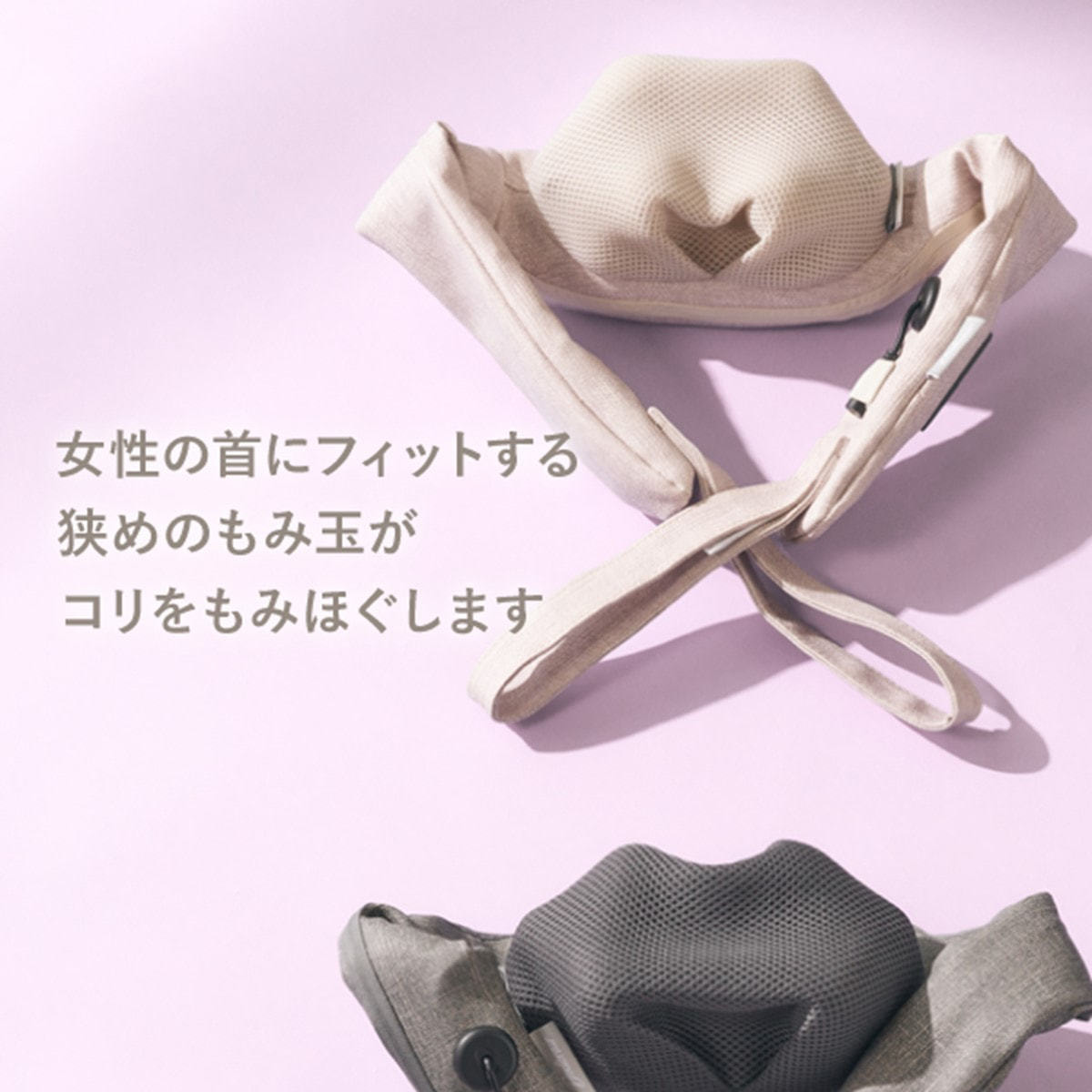 ハの字に配置されたもみ玉は上下を変えて当てることで、首から肩のこりを、ピンポイントでもみほぐしてくれます。