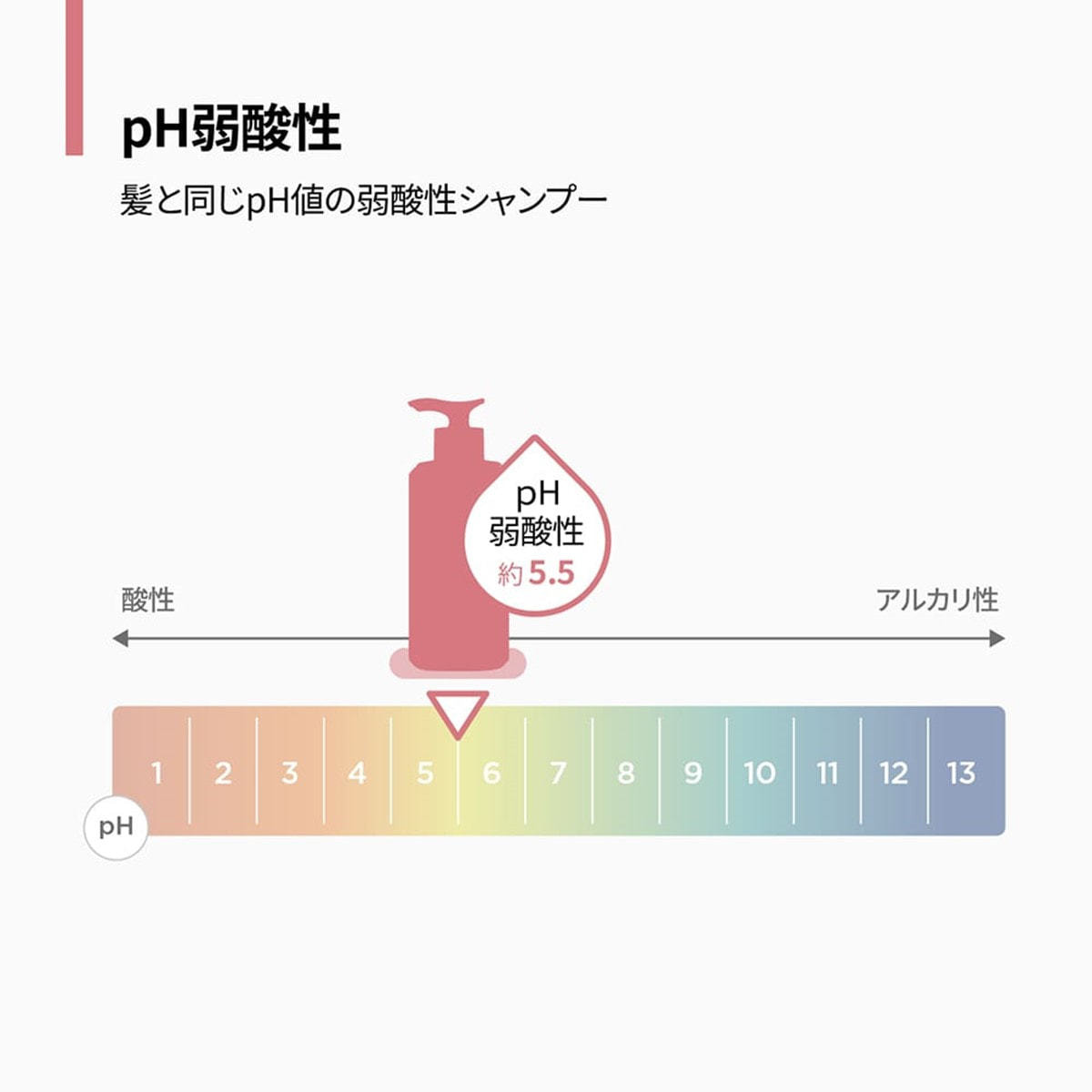 髪と同じph値、約5.5の弱酸性シャンプーで優しく洗い上げます。