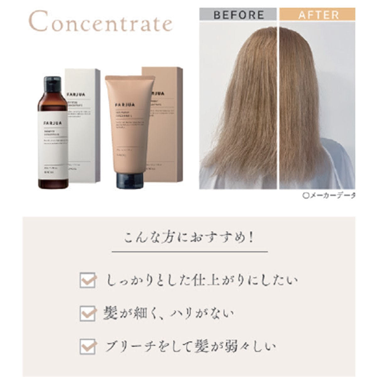 質感調整成分のコンセントレートオイルが髪表面をコートし、よりしっかりとした髪に。