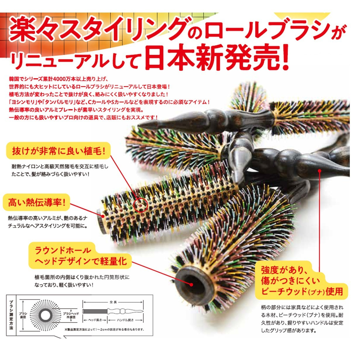 「ヨシンモリ」や「タンバルモリ」など、Sカール・Cカールなどが簡単に表現できるロールブラシとして韓国で大ヒット。