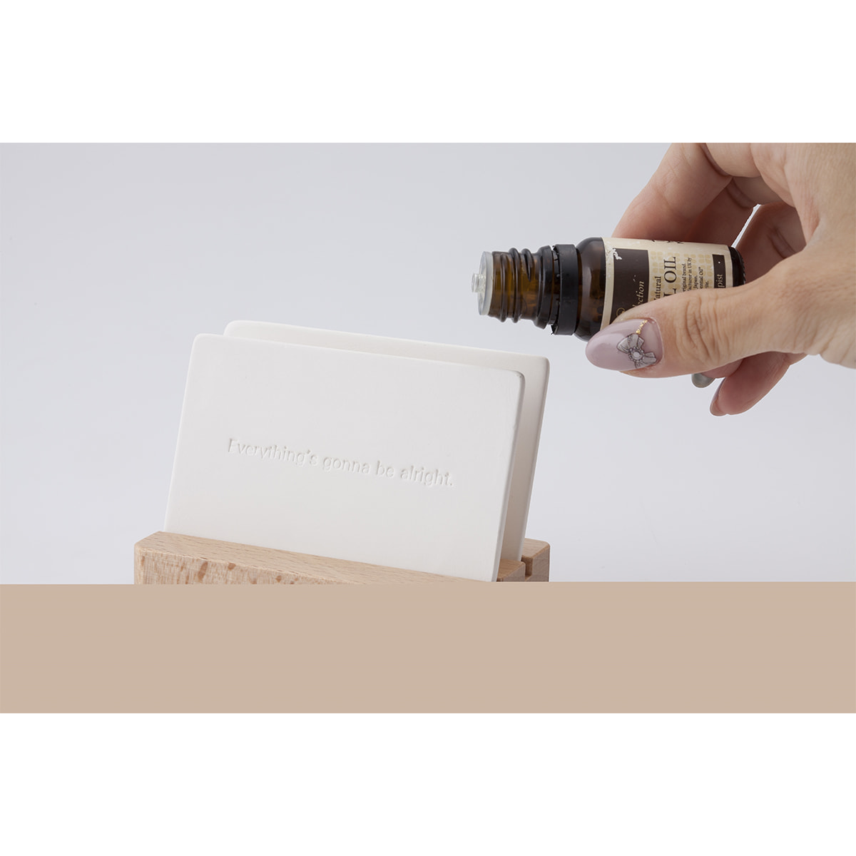 カードディフューザーは、名刺サイズのシンプルなアロマディフューザー。陶器製のプレートに、お気に入りのアロマや香水を染み込ませて使います。