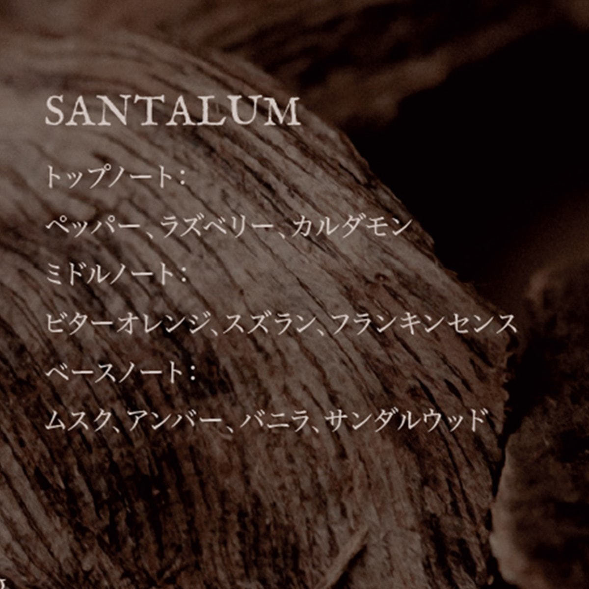 ベースノート:アンバー、ムスク、サンダルウッド、シダー