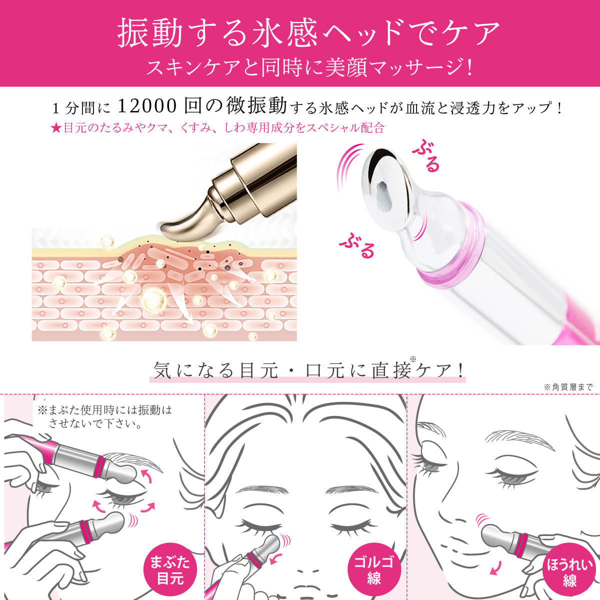 疲れや年齢が現れやすい目元へ微振動で効率的にマッサージ。