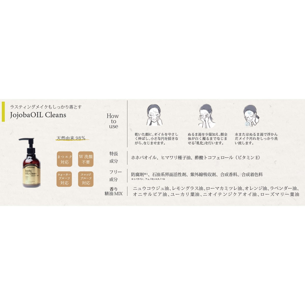 乳化することで、濃いメイクも落ちやすくなり、摩擦によるお肌への負担を軽減できます。