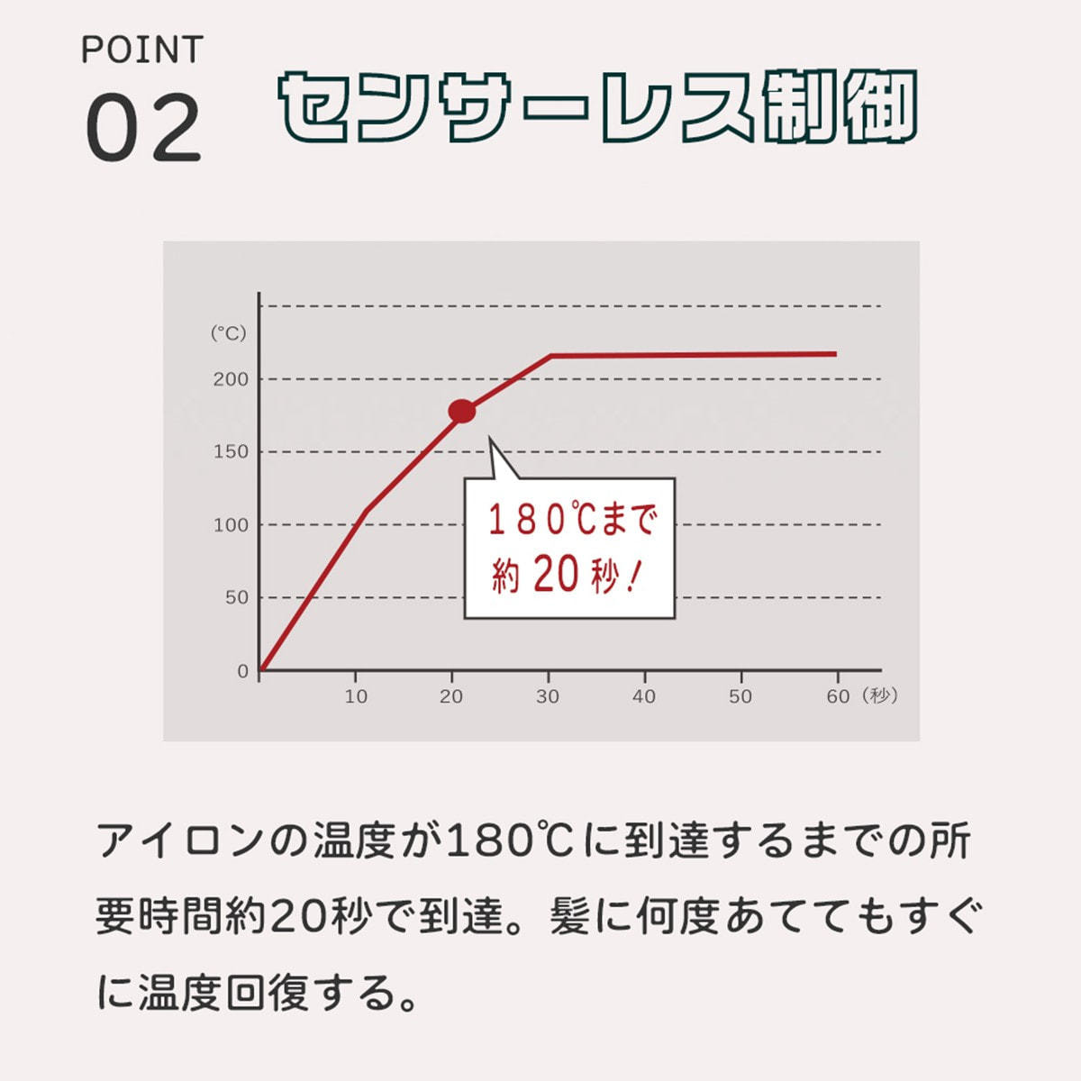 ・パワーオフ機能(30分→60分):従来のオートパワーオフ機能を働かせるための センサー(カラカラ音)がなくなり、60分後に自動で電源が切れる仕様となります。 完全デジタル化の為、継続してご使用になる場合は再度電源ボタンを押してください。温度記憶機能の追加、前回使用した温度を記憶し、電源を入れた際再度同じ温度で温度上昇を開始していきます。