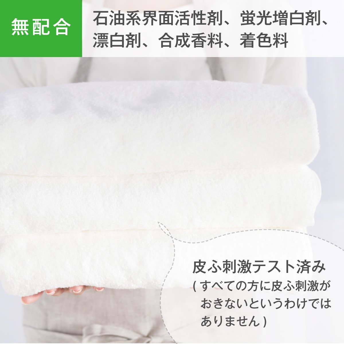 蛍光増白剤や漂白剤無配合なので、生成りや色柄物も安心です。
