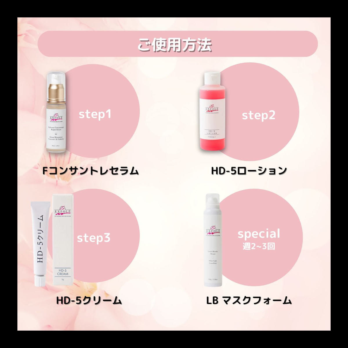 自社ブランドの「エクスフォーレ」は、お肌の調子を整え、肌本来の自然な美しさを引き出す独自フォーミュラのスキンケアブランド。