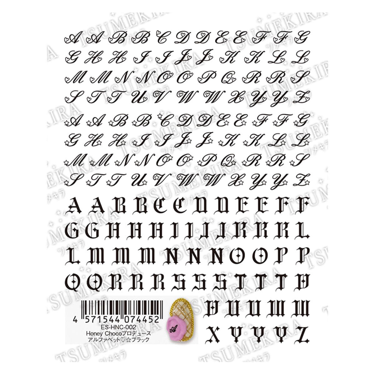 商品番号:0000000000043121 商品コード:207196 商品名:ツメキラ Honey Chocoプロデュース アルファベット ハートスター ブラック ES-HNC-002 お届け目安:2025-11-08