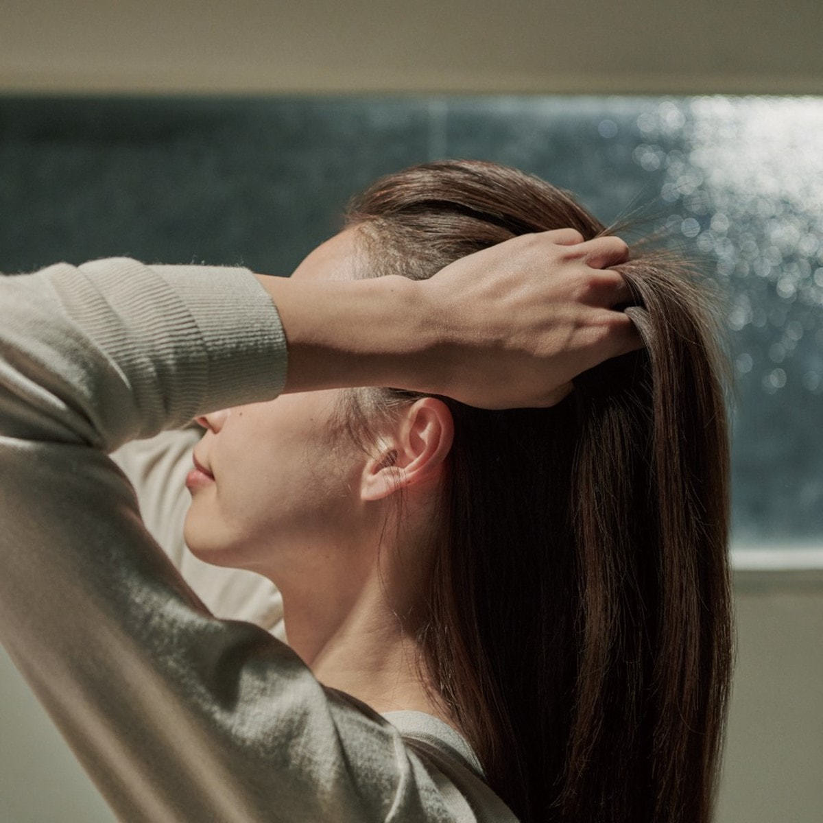 ブラッシングし髪のからまりをといた後に、頭皮までしっかりと濡らし、適量を手に取り、指の腹で頭皮をやさしくマッサージするように洗います。