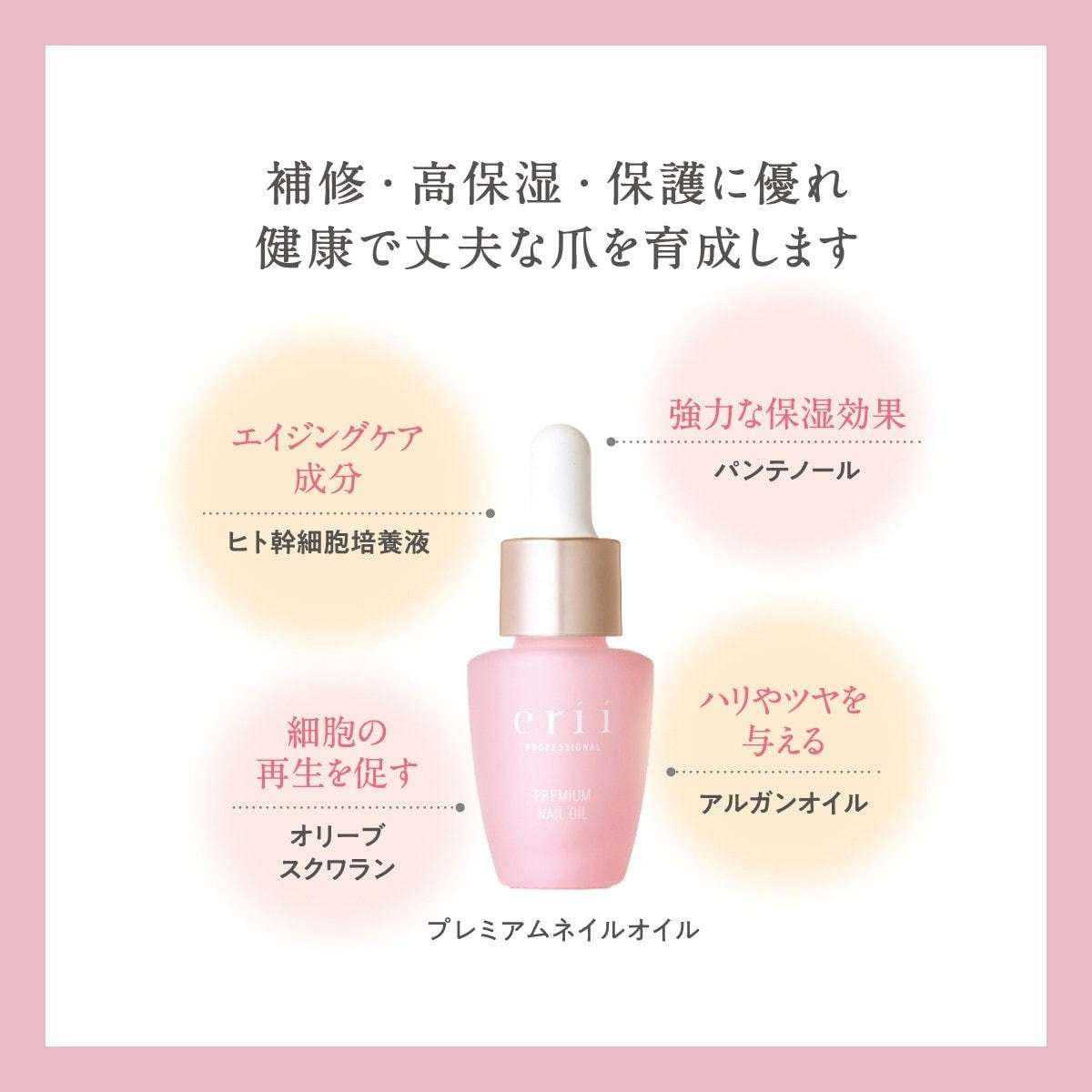 美しいお肌の条件とも言える《ハリ》《ツヤ》《弾力》のあるお肌に導く、 ハンドケアの最高峰を目指したハンドケアアイテム《erii》のプレミアムネイルオイルです。