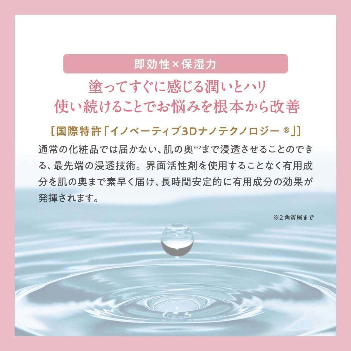 1回の塗布で約24時間の保湿効果を持続し、塗布後からすぐに小じわの改善を実感できます。